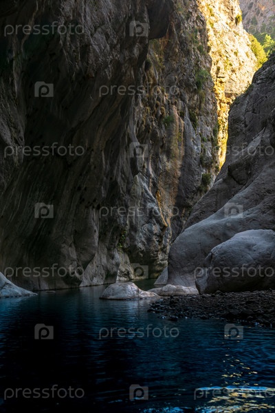 Естественный скалистый каньон с голубой рекой в Гейнюке, Турция