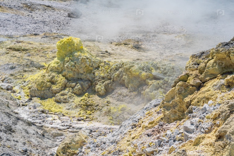 Курение сольфатары в фумарольном поле на склоне вулкана Менделеева