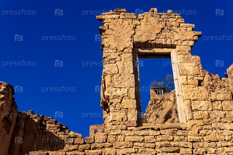 Руины стен обезлюдевшей деревни Гамсутль в лучах заката