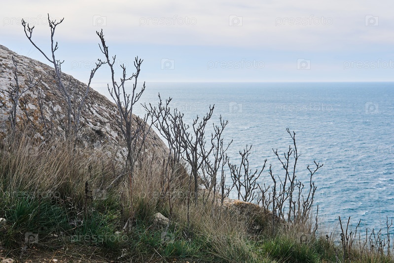 Вид на зимнее море с высокой прибрежной скалы