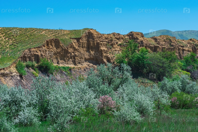 Цветущая роща в долине реки в Дагестане, летний тугайный лес
