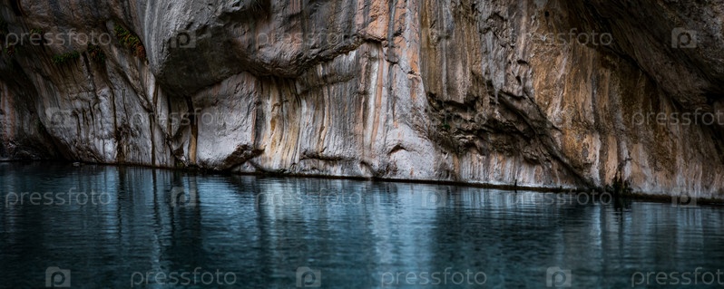Чистая голубая вода в глубоком каньоне с отвесными скальными стенами