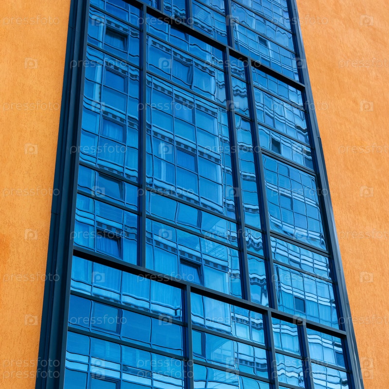 Фрагмент фасада с остеклением, отражающий другое здание
