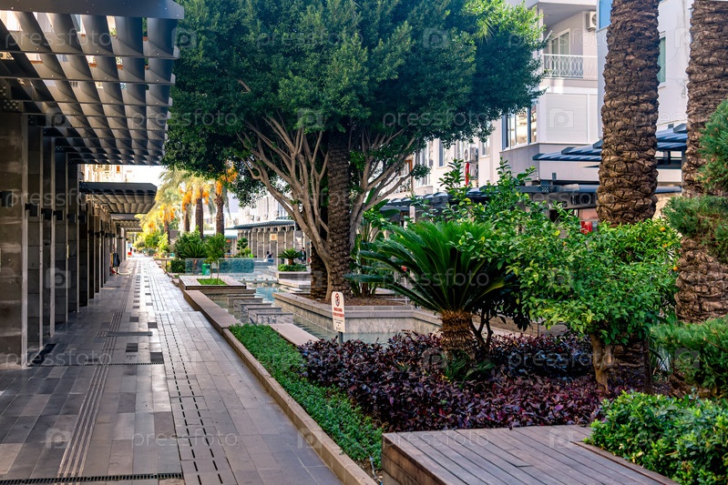 Утренний вид на улицу курортного города Кемер в Турции