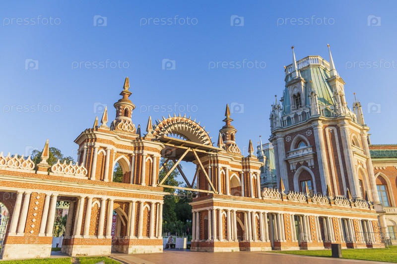 Москва, Россия - 08.07.2023 - Снимок замка-музея-заповедника "Царицыно". Город