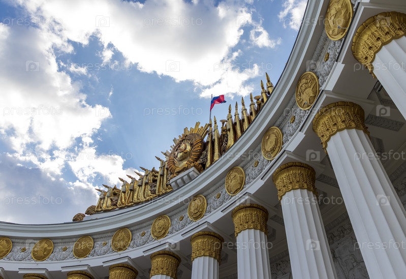 Москва, Россия - 07.09.2023 - Снимок главного входа на площадку Выставки достижений народного хозяйства, известной как ВДНХ. Памятник Ленину. Ориентир