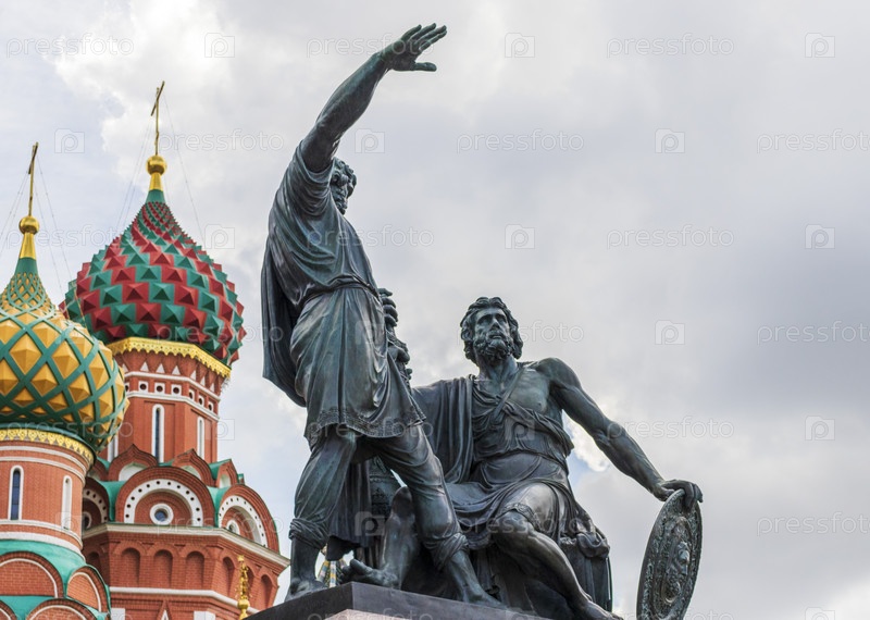 Москва, Россия - 30.07.2023 - Красная площадь, собор Василия Блаженного, памятник Минину и Пожарскому. Ориентир