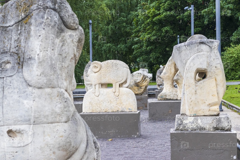 Москва, Россия - 17.07.2023 - Скульптуры в парке Музеон. Город