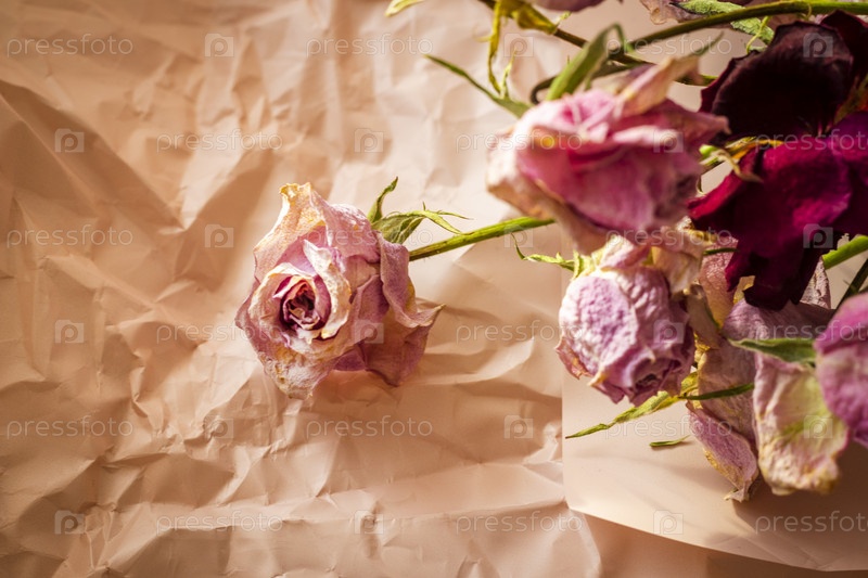 Концептуальный снимок фоновой темы, оберточной бумаги, сушеных роз, других цветов и других композиций. Свадьба