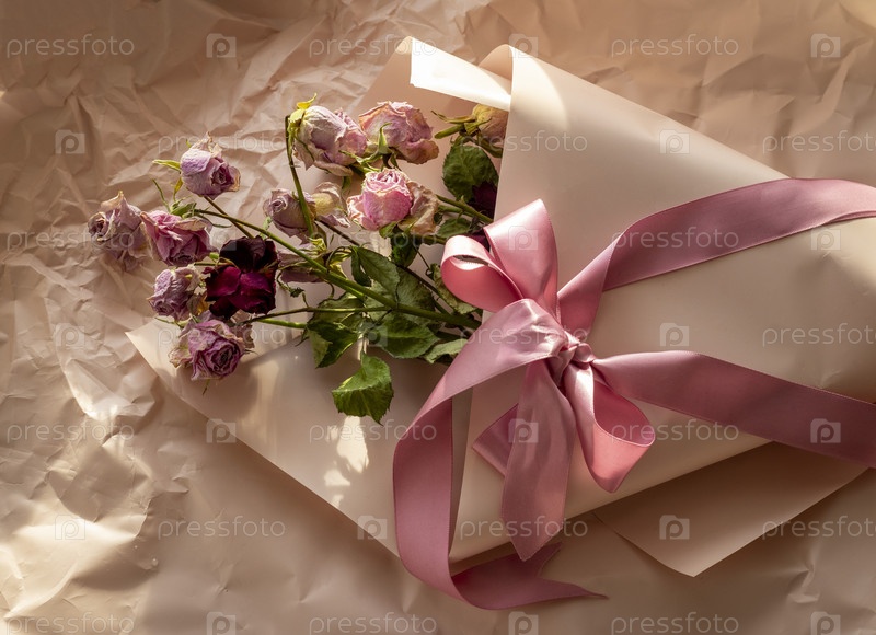 Концептуальный снимок фоновой темы, оберточной бумаги, сушеных роз, других цветов и других композиций. Свадьба