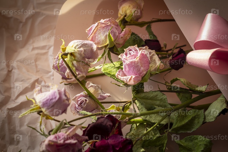 Концептуальный снимок фоновой темы, оберточной бумаги, сушеных роз, других цветов и других композиций. Свадьба
