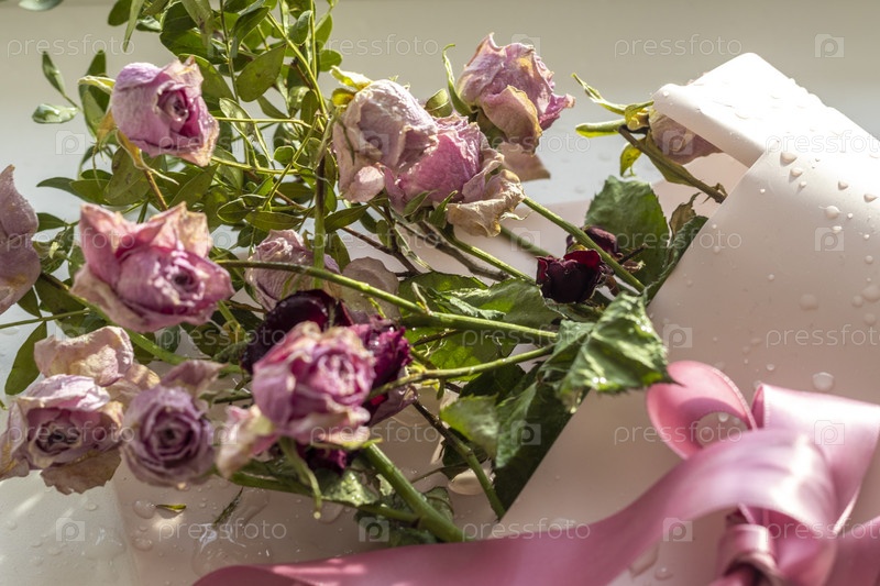 Концептуальный снимок фоновой темы, оберточной бумаги, сушеных роз, других цветов и других композиций. День святого Валентина