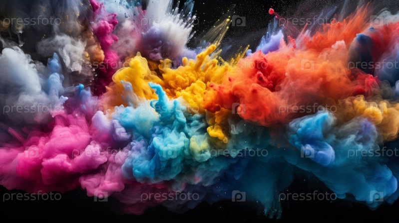Красочный взрыв порошка на черном фоне. Абстрактные пастельные цвета частиц пыли всплеск