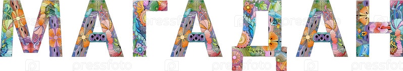 Город Магадан в Российской Федерации. векторный декоративный объект zentangle