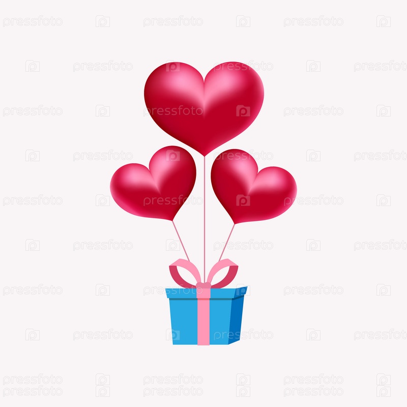 Три воздушных шара в форме сердца с подарочной коробкой