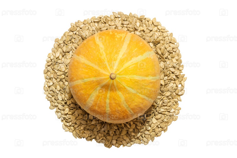 Оранжевая тыква и ее семена на изолированном белом фоне