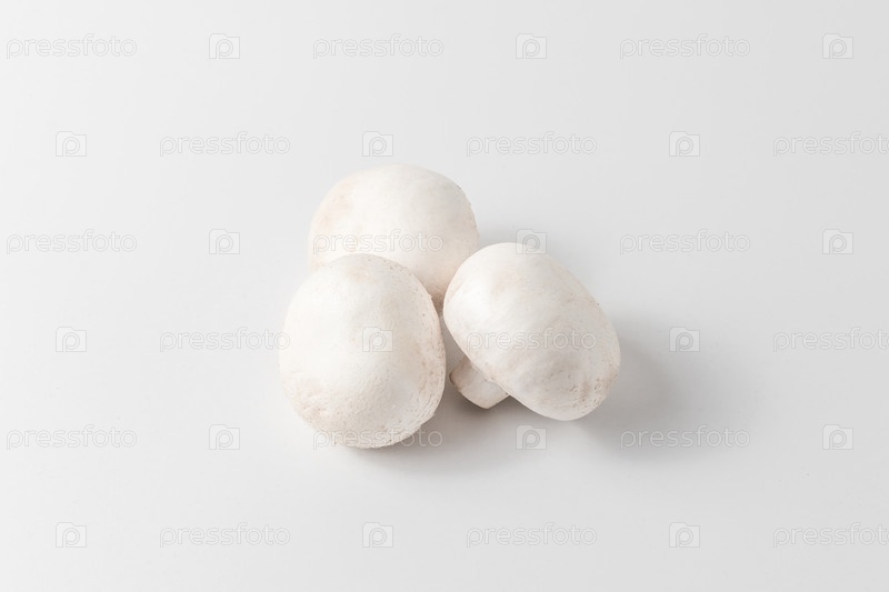 Три шампиньона на белом фоне