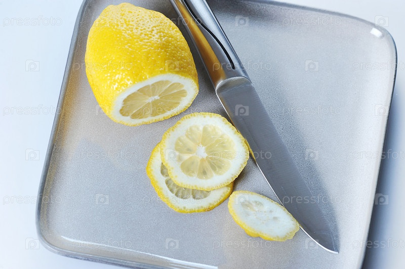 Нарезанный лимон и нож