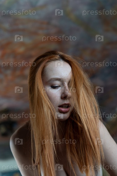 Портрет молодой красивой женщины с рыжими волосами в студии