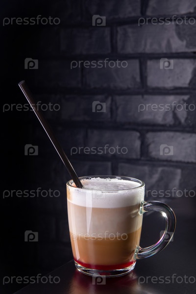 Стакан латте макиато с сиропом и соломинкой