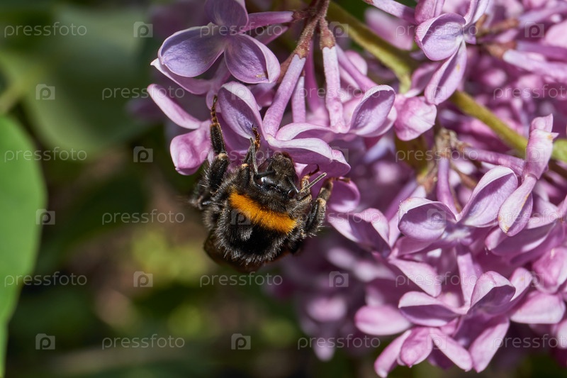 Шмель (лат. bombus) собирает пыльцу и нектар из цветов сирены