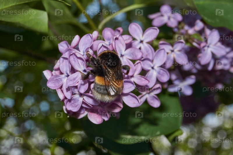 Шмель (лат. bombus) собирает пыльцу и нектар из цветов сирены