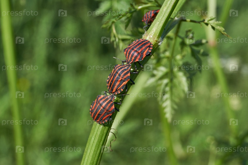 Линейный или полосатый графосом (лат. Graphosoma lineatum) ползет по растениям в саду