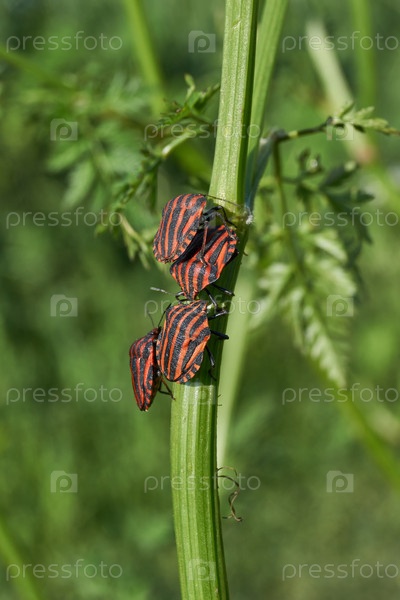 Линейный или полосатый графосом (лат. Graphosoma lineatum) ползет по растениям в саду