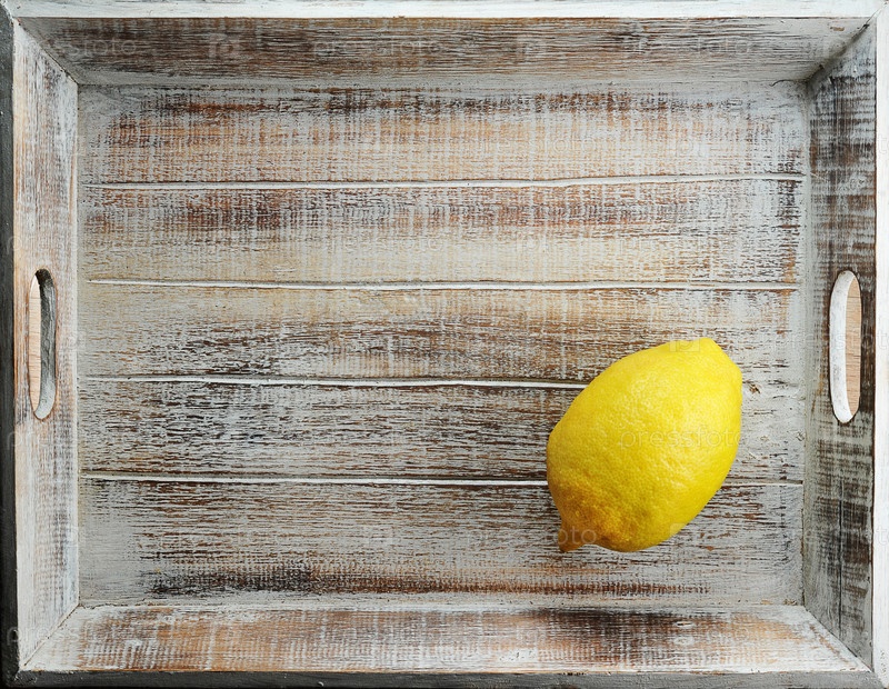 Желтый целый лимон на деревянной коробке