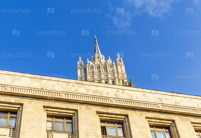 Москва, Россия - 24.07.2023 - Фасад Министерства иностранных дел Российской Федерации. Город