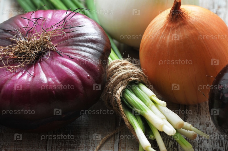 Разные сорта лука – зеленый, желтый, белый и красный лук