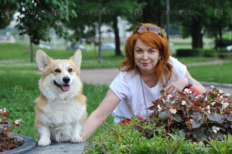 Девушка гуляет с собакой корги в Санкт-Петербурге