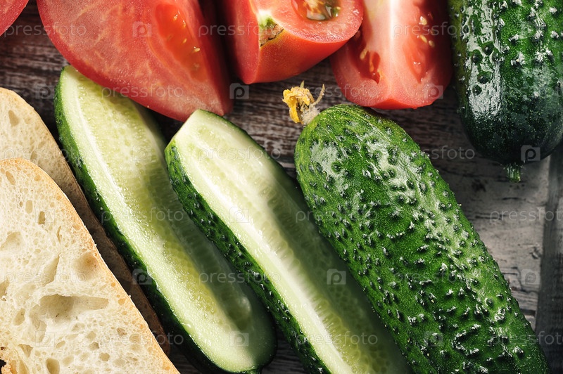 Красные помидоры, зеленые огурцы и чиабатта
