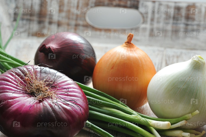 Разные сорта лука – зеленый, желтый, белый и красный лук