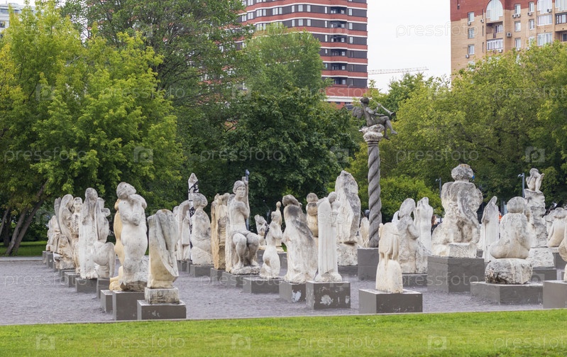 Москва, Россия - 17.07.2023 - Скульптуры в парке Музеон. Город
