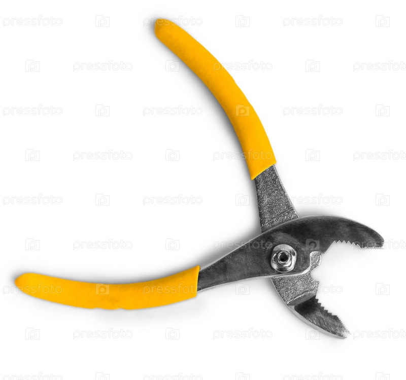 Открытые желтые плоскогубцы, изолированные на белом фоне