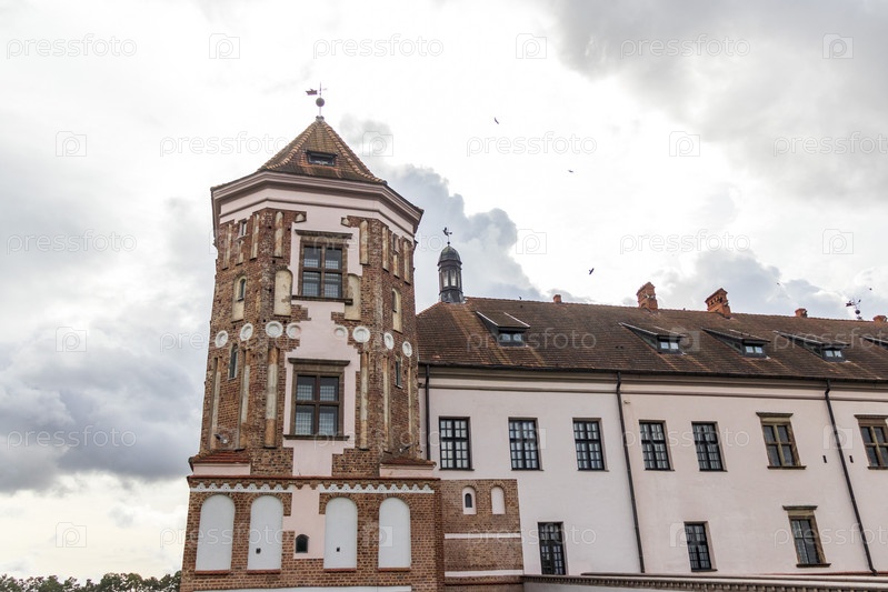 Мир, Беларусь - 10.03.2023 - Кадр Мирского замкового комплекса. Ориентир