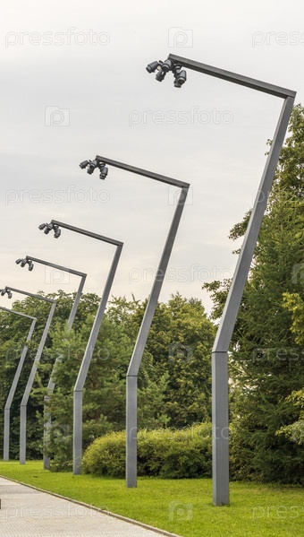 Выстрел фонарных столбов в переулке. Городской