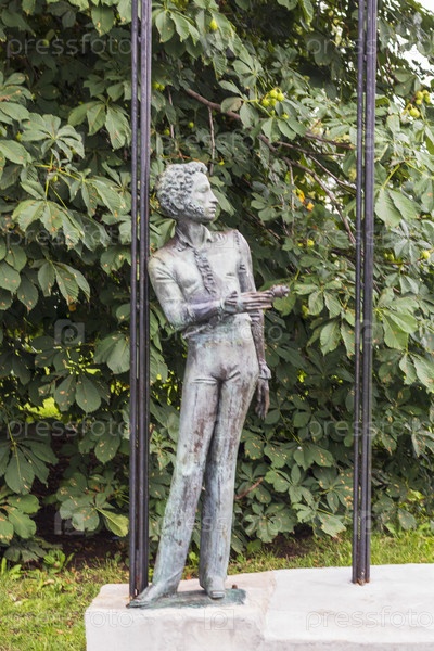 Москва, Россия - 25.07.2023 - Скульптура известного русского поэта Пушкина на экспозиции парка Музеон. Искусство