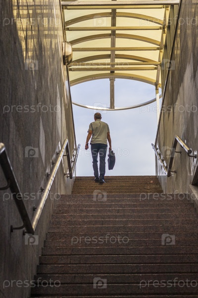 Кадр с мужчиной, поднимающимся по лестнице. Концепция