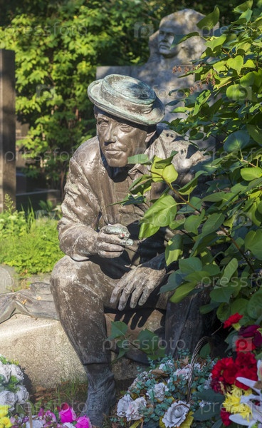 Москва, Россия - 08.06.2023 - Мемориал известному советскому российскому художнику и актеру Юрию Никулину на Новодевичьем кладбище. История