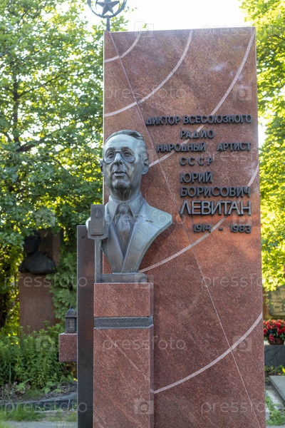 Москва, Россия - 08.06.2023 - Мемориал известному советско-российскому радиоведущему Юрию Левитану на Новодевичьем кладбище. История