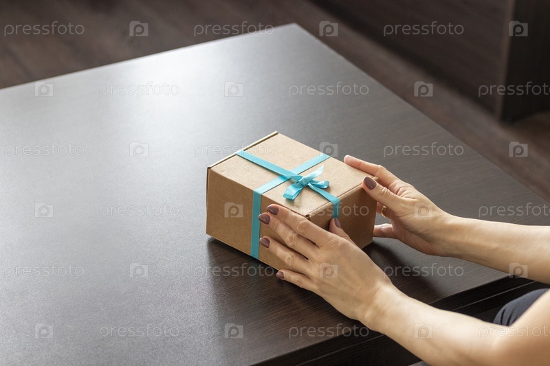 Крупный план женщины, держащей в руках подарочную коробку. Праздничный день