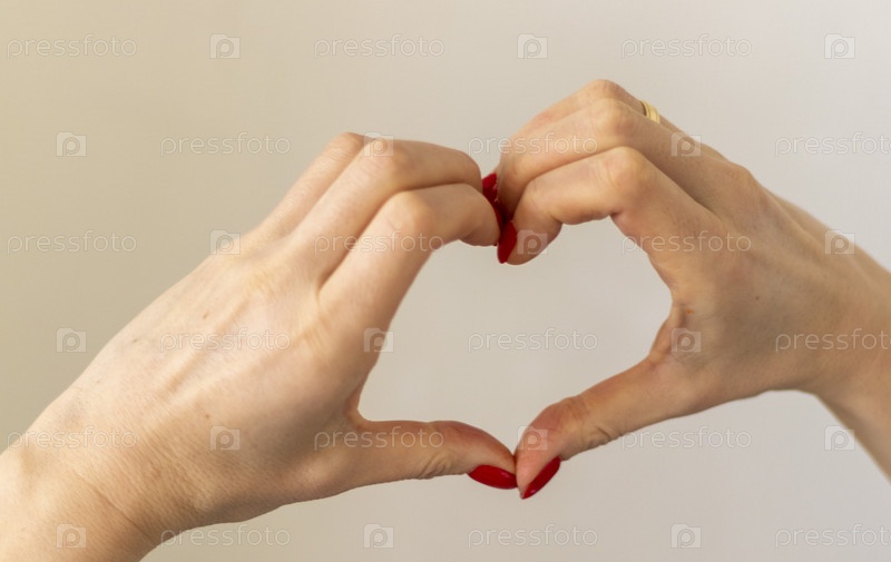 Женщина держит руки в форме сердца как символ любви. День святого Валентина