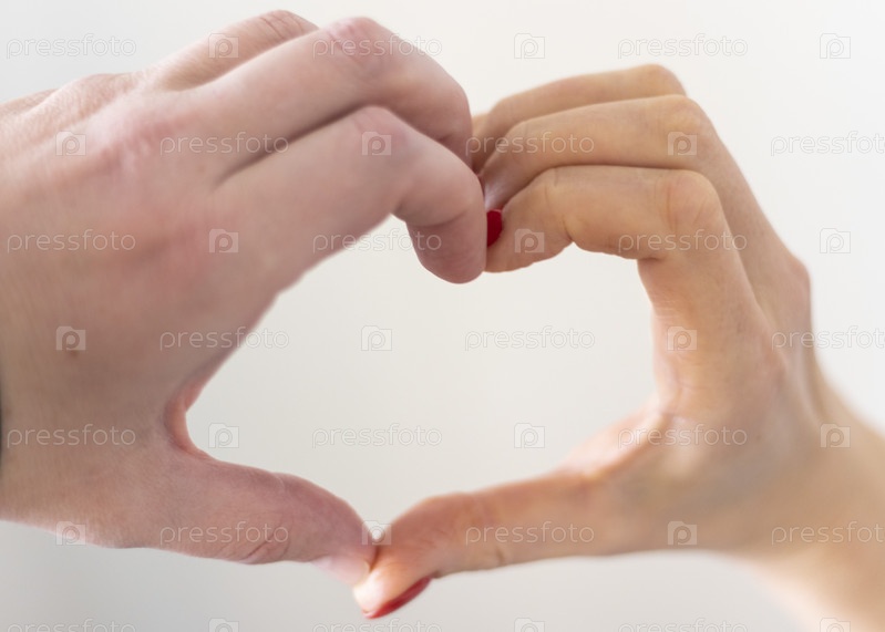 Мужчина и женщина держат руки в форме сердца как символ любви. День святого Валентина