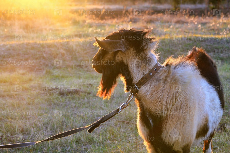 Козел на лугу в деревне