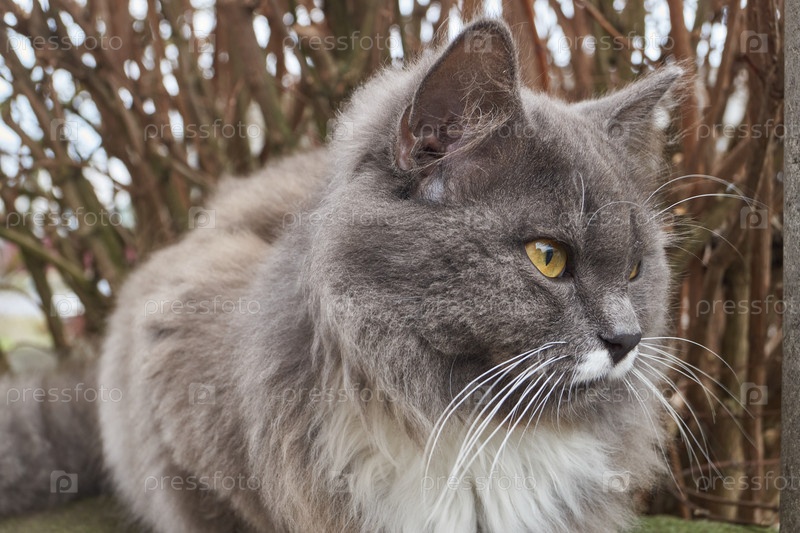 Кот гуляет во дворе дома