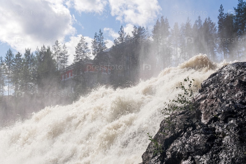 Водопад во время открытия шлюзов для холостого сброса воды на малой ГЭС