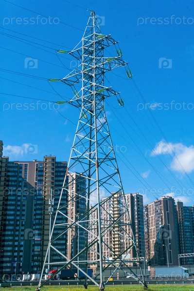 Поддержка линий электропередачи на фоне многоэтажных жилых домов