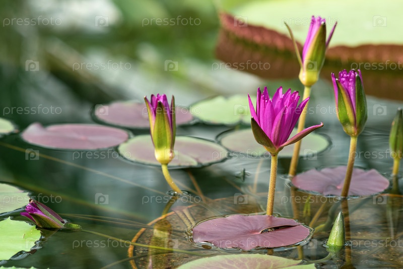 Фиолетовые бутоны тропической кувшинки только начинают раскрываться перед цветением